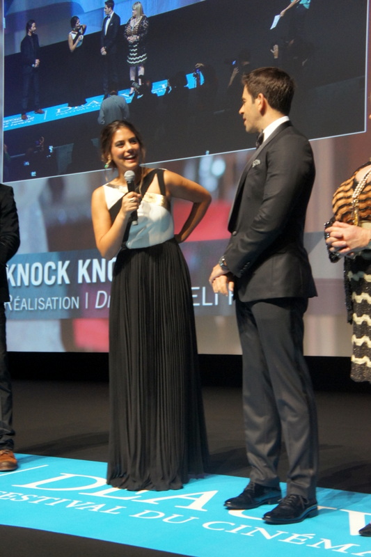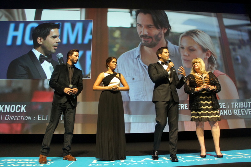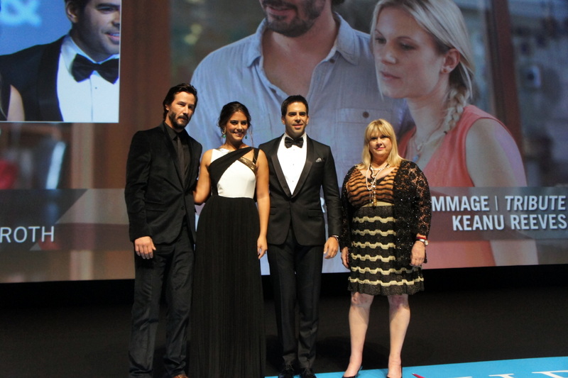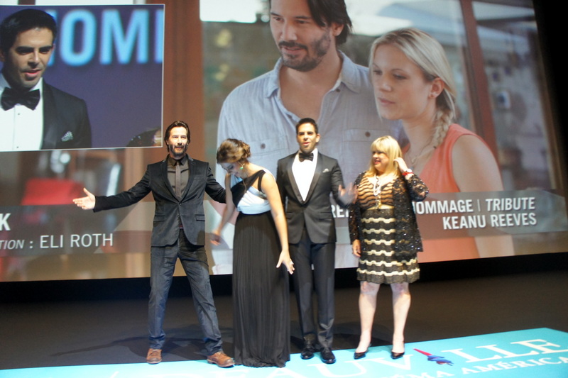 Keanu Reeves, Eli Roth et Lorenza Izzo sur scène pour la première de Knock Knock à Deauville 2015